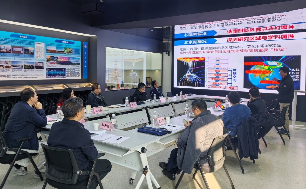 2025年11月4日,国家科技基础条件平台中心副主任卢凡一行赴北京空间环境国家野外科学观测研究站(以下简称“北京国家站”)开展调研并指导工作。国家科技基础条件平台中心原副主任王瑞丹,主管徐波、杨阳;中国科学院科技基础能力局副局长苏奋振、主管苏驰;以及中国科学院地质与地球物理研究所党委书记、副所长黄向阳,科技平台处处长王中兴,北京国家站站长李国主,以及国家站技术骨干等共同参加了调研座谈。